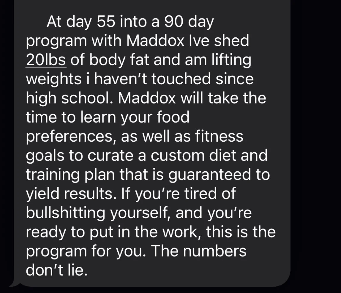"Maddox brings the structure and consistency I really needed. I've loved working together and seeing real progress."