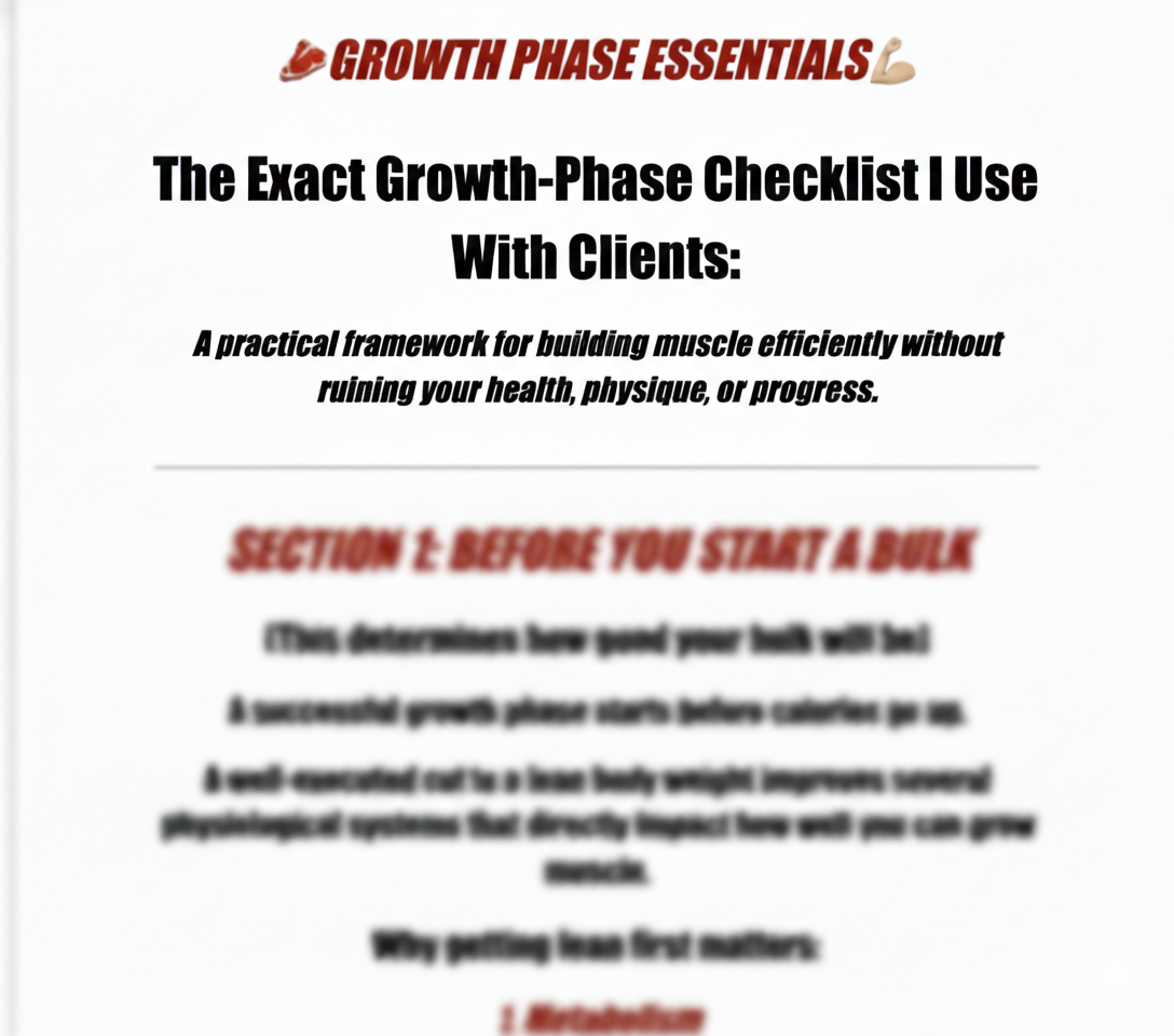 The step-by-step strategy I give clients to grow muscle efficiently without guesswork or wasted time.